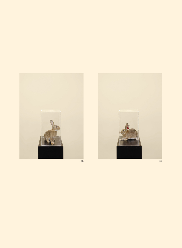 The rabbits are one of these, photographed in their Plexiglas homes at a Queensland research facility, as they await lethal injection. The rabbits pictured above are descendants of 24 that travelled from Europe to Australia in 1859. By the turn of the century, an exasperated farming community started already to organised industrial attempts to cull a rampant and destructive leporine population which continues to cost the Australian government hundreds of millions a year. The key to the work is to view it as a reflexion on human life – how blood navigates its way through history, what kinds of things thwart its ebb and flow. In this last respect, it touches on the extent to which our lives are determined by fate or free will.