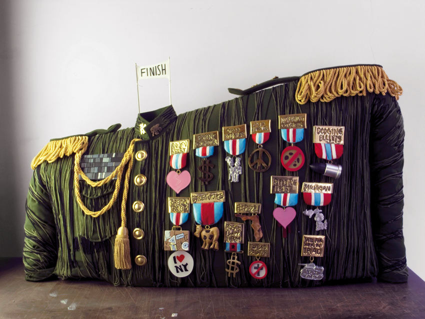Spread ist eine Serie von Installationen, die aus verschiedenen Materialien und Stoff bestehen und 2009 begonnen wurden. Xu bedient sich hier der Methoden satirischer Cartoons, indem er bewusst Formen übersteigert und kontroverse Bilder einsetzt, wie in Spread C-006, eine überreichlich mit Orden dekorierte Offiziersjacke. Die militärischen Abzeichen wirken wie modische Sticker und Selbstbekenntnisse und bilden aus verbreiteten Schlagworten humorvolle Paradoxien, so etwa „Vote for war in Irak“ (Wählen Sie den Irakkrieg) oder „Old Hippy“ (Alter Hippie).
