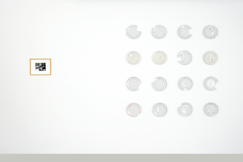Nach einem Studium der Architektur in Tournai und Venedig zog der gebürtige Belgier Francis Alÿs im Jahr 1986 nach Mexico-City, in jene Stadt, die er sich durch zahlreiche Spaziergänge erschloss und die damit zum Schauplatz und zur Inspiration für viele seiner frühen Objekte und Performances werden sollte. Alÿs vermittelt seine Erfahrung der Stadt in poetischen Interventionen, die oft eine politische Stoßrichtung haben. Seine performativen Aktionen ziehen sich durch eine Vielzahl von Medien: Vorzeichnung, Malerei, Installation, Video, Animationsfilm und Fotografie. Den einzelnen Werken liegen dabei sehr klare Konzepte zugrunde, die mit den Prinzipien von Wiederholung, Re-Enactment, mit Modifikation und Umgestaltung arbeiten und sich mit diesen Methoden häufig auf die Geschichte Südamerikas und das dortige, zeitverzögerte Aufkommen der Moderne beziehen. Die Installation 15+1 entstand anlässlich der Tirana Biennale im Jahr 2009. Die Biennale fand in einem leer stehenden Hotel statt, dem Datji, das 1940 von einem italienischen Architekten erbaut wurde und einst historisches und architektonisches Wahrzeichen Albaniens war. Jahrzehntelang verkörperte es die Ideologien und Machtstrukturen all derer, die es aufsuchten. Alÿs’ Installation besteht aus einer Fotografie und fünfzehn Tellern aus dem Tafelservice des Hotels, die zerschlagen und wieder zusammengesetzt wurden, wobei stets je ein Bruchstück ausgelassen wurde. Aus diesen Fragmenten wurde ein zusätzlicher Teller geformt. Die Fotografie zeigt ein Standbild aus den Fernsehnachrichten, es stammt aus dem Bericht über ein festliches Abendessen im Hotel Datji zu Titos Zeiten. Alÿs’ Werk ist Sinnbild für eine Konstruktion von Geschichte, die auf verformbaren Zeugnissen beruht, die jederzeit neu zusammengesetzt oder sogar erfunden werden können.