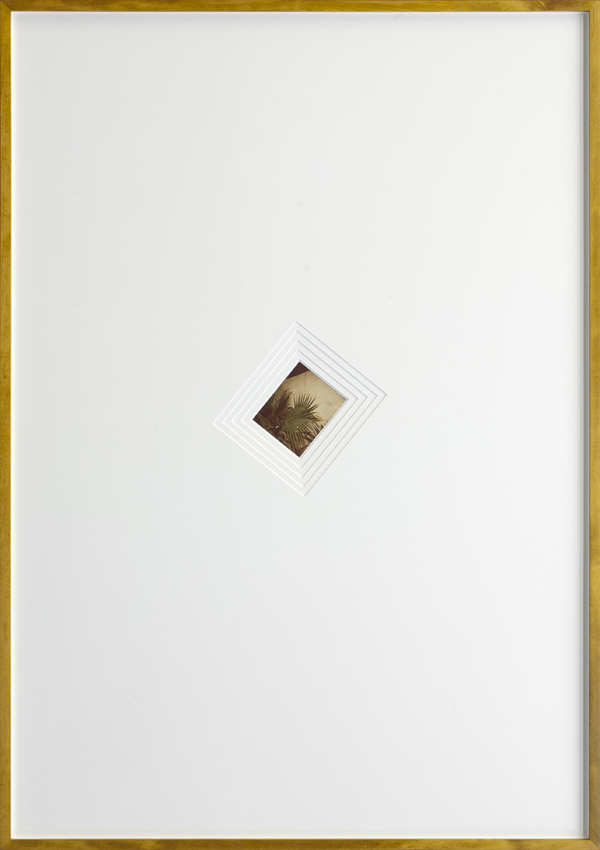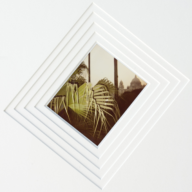 Indian Palm Study I was produced during a research trip in India on the occasion of the Paris - Delhi - Bombay… exhibition, held at the Parisian Centre Pompidou in 2011. In a way, this work extends the Geographical Analogies Polaroid series (2006-2010), a documentary study of architectonic details shot by the artist in various locations around the world to point out their similarities. As the title clearly states, the subject of the Indian Palm Study is nature, a recurring theme in his corpus that he always confronts with architecture. Parts of buildings appear in the background but the main subjects here remain the palm trees, as structuring elements of the Indian landscape that he explores from Delhi to Chandigarh, Varanasi to Calcutta, Hampi to Goa and Bombay. He produced two series of nine Polaroids each, the first focusing on the leaves and the second on the trunks, using a scientific-like sampling approach. The Polaroid technique is used for its immediacy, which produces unique witness images on the very location of the photo shoot. But as close to a perfect visual account as it may seem, this type of image is also subject to decay as the photographic paper gradually fades. Art writer Jan Tumlir sees Polaroid as a “readymade ruin”, which follows the same entropic law as the architecture and nature that Gaillard unceasingly brings into play.