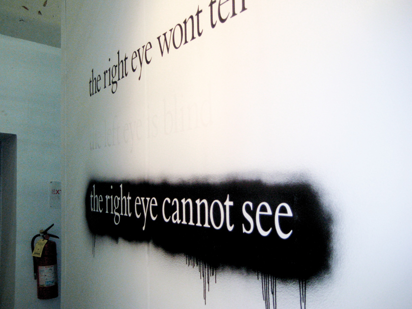 Winner of the Turner Prize in 1996, Douglas Gordon first gained recognition in 1993 with his celebrated video installation 24 Hour Psycho, which slows down Alfred Hitchcock’s emblematic movie Psycho to make it last exactly twenty-four hours. This seminal piece is an introduction to Gordon’s work, which deals with recognition and repetition, time and memory, life and death, duplicity and authorship… He uses both appropriated and original material in his practice that encompasses film, photography, installation, text and sound. Gordon is part of a generation of artists who attended the Glasgow School of Art during the nineties, together with Christine Borland, Roderick Buchanan, Nathan Coley, Jonathan Monk, Simon Starling or Richard Wright, and who were greatly influenced by the conceptual art of the seventies. Douglas Gordon’s text-based work, inspired for instance by Art & Language, generates a dialogue between the artist and the viewer that is often directly addressed by the text. The artist said: “I always liked the idea that words, which are supposed to be concrete, when spoken by a different person at a different time can have a completely different meaning.” At the heart of his reflection are the questions of perception and meaning, perfectly illustrated in the work Eye + Eye, which subtly intertwines form and content.